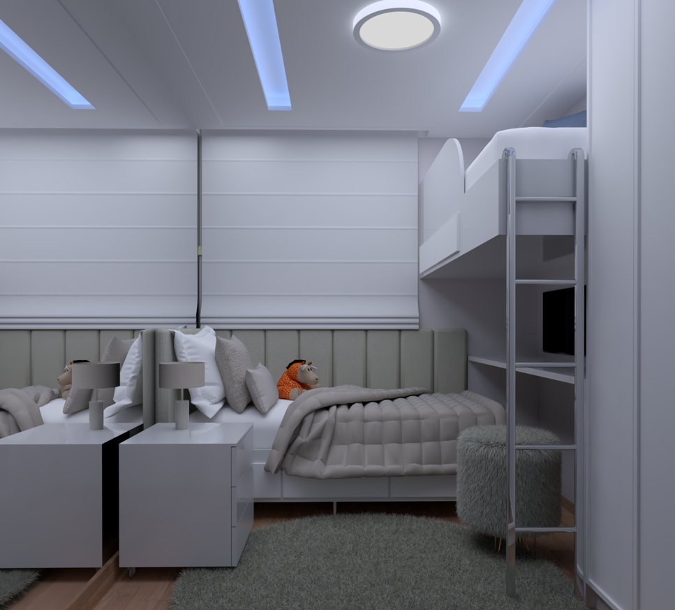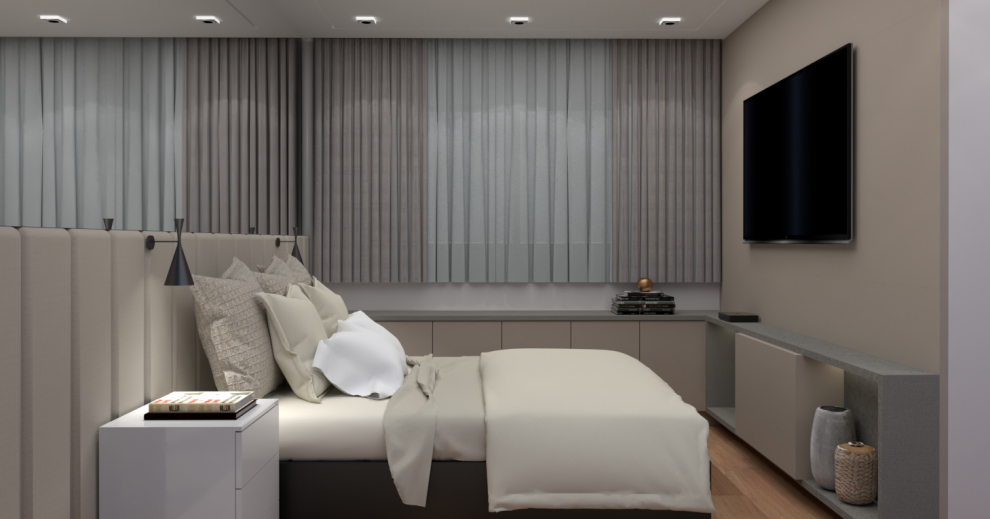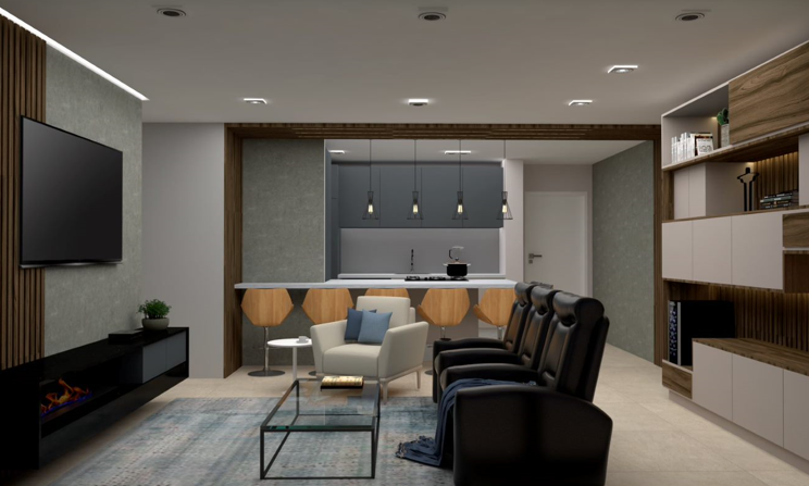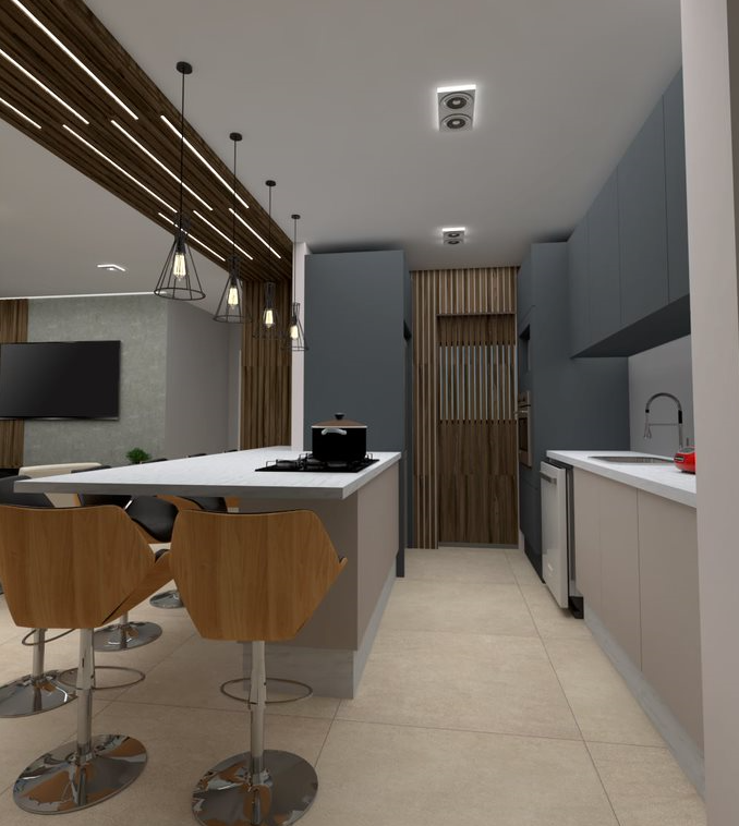 Realizamos o projeto desse apartamento que ficou impecável. Fizemos o projeto da Sala de Estar e Jantar, Cozinha, Lavabo, Quarto do Casal, Quarto da Criança e um Escritório. Utilizamos a mesma paleta de cores por todo o apartamento para dar aquele ar moderno que nós amamos não é mesmo?