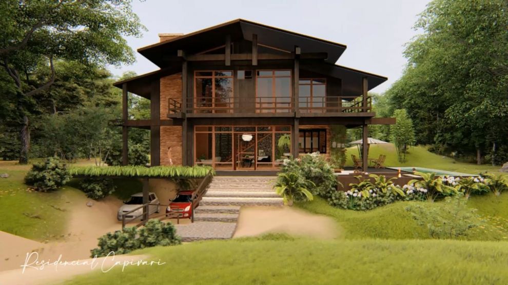 Uma fachada voltada para Leste, dando de frente com a maravilhosa vista de uma represa, pensamos neste projeto ao máximo com o maior aproveitamento desta linda paisagem. A casa de dois andares é composta por 4 suítes, possui um terreno alto e ingrime, o que nos fez aprofundarmos muito do paisagismo desta linda casa.